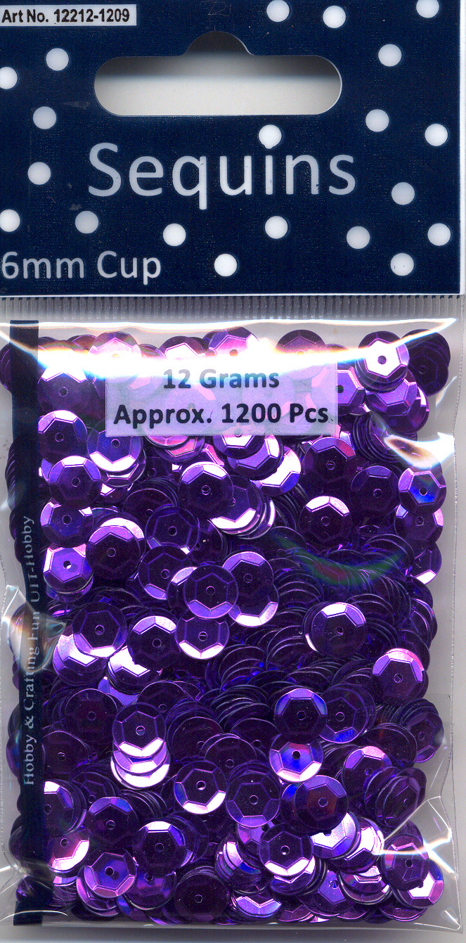 Pailetten 6 mm cup 12 gram ca. 1200 stuks Paars